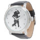 Uhr, Vintage Männeruhr mit schwarzem Lederarmband