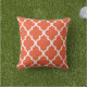 Gittermustergarten- oder -patiokissen des Tangos orange. Gemacht in den USA. UV- und des Mehltaus beständige Kissen im Freienmit einem marokkanischen quatrefoil ogee entwerfen in den hellen Sommerfarben. Verfügbar in einem 16 oder 20-Zoll-Quadrat und 13" durch 21" rechteckige Größen. Einsatz eingeschlossen. (Auch verfügbar wie ein Innencouch- oder Sofa-Wurfsakzentkissen, gerade ausgewählte Baumwolle oder Polyester vom Gewebevorsprung).