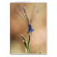 Männlich blauklingeliger Tänzer feucht (31-36 mm) landet, fliege dann ab und landete wieder auf einem Stück Gras. Wenn er landet, sind seine Flügel immer noch etwas auseinander von seinem vorherigen Kampf. Blaue Tänzer sind im Südwesten des Sommers ein beliebter Anblick. Dieses Männchen wurde in Gilbert, Arizona, gefunden. Foto von Ruth Jolly.