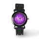 Uhr, Kinderuhr aus Edelstahluhr mit lila Lederarmband
