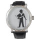 Uhr, Vintage Männeruhr mit schwarzem Lederarmband
