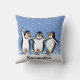 Dancing Pinguins Design Throw Kissen mit anpassbarer Hintergrundfarbe und Text.