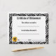 Dieser Tanzpreis zeichnet sich durch eine lustige und angesagte Zebra-Druckgrenze aus und bietet dem Einzelnen mit seiner Unterschrift einen personalisierten und herausragenden Schreib.Das Zertifikat wird mit einer Silhouette eines Tänzers ergänzt, der einen Arabesken in einem goldenen Emblem in der verlassen unteren Ecke macht - dieses Zeugnis eignet sich perfekt, um einer Ballerina in einer Tanzvorführung vorzustellen.