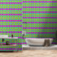 Tapete mit schwarzem, rosa gelbem Muster abziehen und kleben. Die Innenarchitekten der Mieter können jedes Zimmer personalisiert aussehen.
