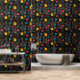 Die geometrische Dreiecksplattform mit schwarzem Kopfbrett bildet Formen für die Wanddekoration der Schulgebäude. Lösungen für die Inneneinrichtung.