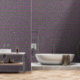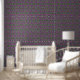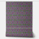 Tapete abziehen und kleben. Lila, grün-gelbes geometrisches Stammesmuster in hellen Farben. Die Innenarchitekten der Mieter können jedes Zimmer personalisiert aussehen.