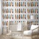 Ziehen Sie die Tapete und kleben Sie die blaue braune Federn Tapete. Die Innenarchitekten der Mieter können ein personalisiertes Aussehen für jedes Zimmer schaffen
