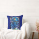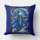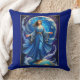 Kissen in "The World" Tarot-Karte, die eine anmutige Frau in verzierten blauen Roben darstellt, symbolisiert Einheit und Erfüllung. Stehend auf einem strahlenden Globus verkörpert sie Harmonie, Ganzheit und universelle Verbindung.