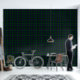 Traditionelle keltische schwarze Uhrtartan karierte gemusterte Schale und Stock Wandpapier in üppig grün und schwarz. Erleben Sie eine warme und musikalische Atmosphäre mit dieser gemusterten Tapete.