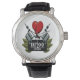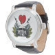 Uhr, Vintage Männeruhr mit schwarzem Lederarmband