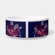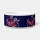 Dieses Design ist ein Tattoo von vielen verschiedenen Blume, Blätter und Weinreben. Ein paar Schmetterlinge können um die Blume fliegen gesehen werden. Die Farben der Tätowierung sind eine rote Farbe mit einem Hauch von Pfirsich. Auf der Speisekarte stehen vier Designs, die sich um die Seiten des Tisches drehen. Dieses Hundegericht kann mit dem Namen der Haustiere auf der Vorderseite des Gerichts angepasst werden.