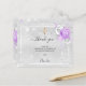 Eine schlichte und elegante Dankkarte mit Foto. Ein Imitat silber metallisch aussehender Hintergrund, ein weißer Rahmen, Imitate Glitzer Staub, lila Rose, Blumen. Ein goldenes Kreuz. Personalisieren und fügen Sie ein Dankeschön Note, Foto der Babys Mädchen und Name. Schwarzer Text.