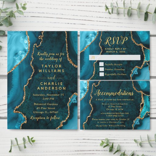 Teal Blue and Gold Agate Marble WeddingDesignt von Kirsty W