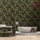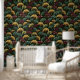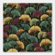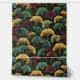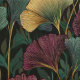 This design features the popular ginkgo leaf motif in rich jewel tones of teal, burgundy and gold on an off-black background.