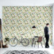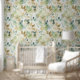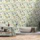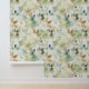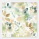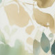 Dies ist ein nahtloser Aquarelldruck auf weißem Hintergrund. Das Design besteht aus verschiedenen Blättern in Teal-, Salbei- und Bräunungstönen mit schwammiger Wasserfarbe im Hintergrund.