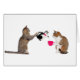 Portrait von zwei Katzen, die sich gegenüberstehen, eine auf ihren Hinterbeinen aufgerichtet und von einer Keramik Katzenchariktur Teekanne in eine rosa Tasse, die von der zweiten gehalten wird, während sie ihre Teatime genießen