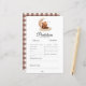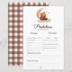 Diese Teddy-Bären-Prädiktionsspielkarte bietet einen niedlichen Teddybär, der zwischen weichen Wolken in sanften Beige- und Brauntönen eingebettet ist. Die Gäste können ihre Voraussagen für die Ankunft des Babys ausfüllen, z.B. Geburtsdatum, Gewicht und Name, und Ihre Babydusche mit einem unterhaltsamen und interaktiven Element ergänzen. Diese Spielkarte eignet sich perfekt für eine neutrale oder waldbezogene Feier und schafft so ein unglaubliches Erlebnis für Ihre Gäste.