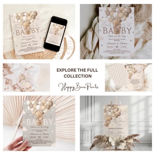 Teddy Bären Heißluftballon Themed geschlechtsneutrale Babydusche einladen. Matching Elemente zur Verfügung, freundliche Nachricht via zazzle.