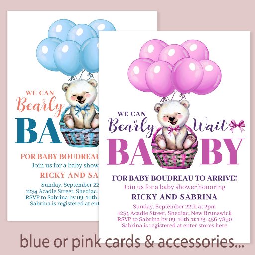 Teddy Bear Bearly There Blue Baby Dusche Einladung