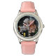 Kinderuhr aus Edelstahl mit rosa Lederarmband