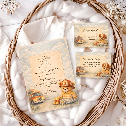 Teddy Bear Firefighter Baby Shower Einladung