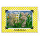 Teddy Bär und sonnig im duftenden Garten mit gelbem Polka Dotframe.