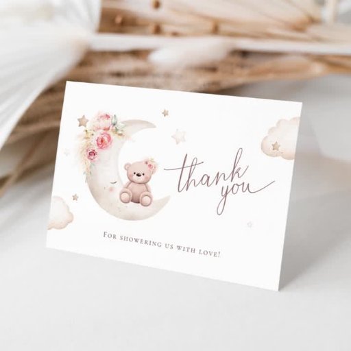 Teddy Bären über der Mond Neutral Baby Dusche Dank Karte. Verfügbare Matching-Elemente.