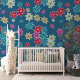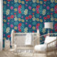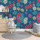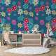Tee Blue Hot Pink Beige Blumen Kunstmuster Tapete