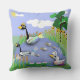 Teiches im Cartoon mit Gänsen und Enten Kissen
