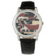Uhr, Vintage Männeruhr mit schwarzem Lederarmband