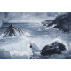 Tempest an der walisischen Küste. Der Sturm stürmt vorwärts, wild und unerbittlich, während die Wellen gegen die zerklüfteten Klippen von Wales kollidieren. Ein monochromes Meisterwerk des unnachgiebigen Powers der Natur, während das Chaos auf Schönheit trifft, während der Sturm wütet - Wellen explodieren in Schaum, Felsen glisten unter dem Gewicht des Sturms und der Horizont verblasst in Nebel.