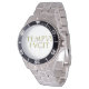 Stahluhr aus rostfreiem Stahl mit lateinischem Motto Tempus Fugit in goldenen Buchstaben