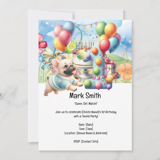 Mit unserer Tennis-Party Einladung servieren wir Ihnen ein Ass der Einladung zum 1. Geburtstag Ihres Kleinen! Mit einem spielerischen Tennisdesign Set diese Einladung den Ton für sportliche und unterhaltsame Feste. Egal, ob Sie Gäste zum Hofe oder auf der Zuhause einladen, es eignet sich hervorragend, um die Spannung ihres besonderen Tages zu vermitteln. Personalisieren Sie mit allen wichtigen Details und Kundgebung alle zusammen, um ihr erstes Jahr mit Liebe für das Tennisspiel zu feiern!