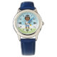 Kinderuhr aus Edelstahl mit blauem Lederarmband