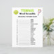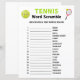⭐️ Was es ist: Tennis Word Scramble Game ist ein Party-Spiel. Entwirf die Worte über Tennis. Richtig und am schnellsten! Tennis Word Scramble Game's Antwortschlüssel: 1. DEUCE 2. SMASH, 3. ALLEY, 4. BODENSTROKE, 5. MATCH, 6. SERVE, 7. BACKCOURT, 8. ANSATZ, 9. VOLLEY, 10. POACH, 11. DOPPELT, 12. FEHLER, 13. SLICE, 14 TOPSPIN, 15. FRÜHAND, 16. KUNDGEBUNG, 17. DROP SHOT, 18. ÜBERHAUPT.