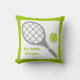 Tennisschläger und Ballwurfkissen, die einen grauen Schläger, einen grünen Tennisball und Ihren Text auf weißem Hintergrund mit grüner Grenze zeigen. Dieses coole Design ist eine Vorlage und ist vollständig anpassbar. Personalisieren Sie es und fügen Sie den Text "Bester Tennisspieler" oder Monogramm, Name oder Ihre Nachricht. Einige Elemente mit freundlicher Genehmigung von vectorportal.com.