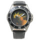 Uhr, Vintage Männeruhr mit schwarzem Lederarmband