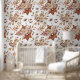 Terracotta Bouquet aus Herbstblumen Anordnung Tapete. Diese Tapete zeigt eine schöne Anordnung von Herbstblumen in einer Terrakotta-Farbpalette. Das komplexe Muster erfasst das Wesen des Falles mit seinen reichen Farbtönen und strukturierten Details. Der Blumenstrauß und die Äste auf den Tapeten verleihen jedem Raum eine warme und elegante Note, was ihn zu einer perfekten Wahl für diejenigen macht, die die Schönheit des Herbstes in den Innenräumen bringen wollen. Egal ob Sie eine gemütliche Atmosphäre im Wohnzimmer schaffen oder Ihrem Schlafzimmer eine Farbe verleihen möchten, dieses Terrakottabouquet aus herbstblühenden Tapeten wird sicher eine Aussage treffen.