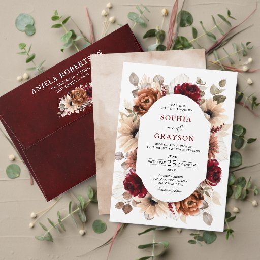Terracotta Burgundy Mauve Floral Geometric Wedding Save The Date