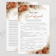 Terracotta Kupfer Blüte Die 1950er Jahre Good Ehefrau Guide Brautparty-Spiel, Dieses trendige populäre Design ist perfekt für alle boho oder tropischen Stil Events. Das Design ist mit Aquarellgras handgemalt Pampas Reds gemischt getrocknete Palmen Blätter gemischte Terrakotta-Blume und gemischte verbrannte orange Rose gemischte Kupfer-Blume Wüsten-Rose und gemischte burgundy Blume Rose gemischt rostigen Erdtönen Blume und berührte eukalyptusgrün und kombiniert moderne kalligraphische Schriftart. Wenn Sie ein Party oder eine Strandfeier planen, ist dieses Design genau das Richtige für Sie. Boho Gefühl und bemerkenswerte Vision. Burnt orange Blume gemischt bordeauxfarbene Rose gemischt Terrakotta Blume und Anordnung grünen Eukalyptus und kombiniert trendige Drehbuch-Schriftart macht dieses Design-Objekte so atemberaubend. Erfolgreich für Hochzeit, Brautparty, Verlobung, Kinderdusche, Jubiläum oder jede Veranstaltung. In dieser Kollektion finden Sie alle Elemente für Ihr Party, wie z.B. Hochzeitseinladungen, Brautduscheinladungen, Babydusche-Einladungen, Sitzkarten, Menüs, Programme, Tags, Etiketten, Schilder, Plakate und vieles mehr. Viel Spaß! Kontaktieren Sie mich für passende Artikel oder für Anpassungen, Blush Rose ©