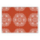 Dieses weiße Mandala sitzt auf einem dunkelorangen Hintergrund. Die Farben sind kreativ und warm. Teil der Rosenn Mandala Kollektion.