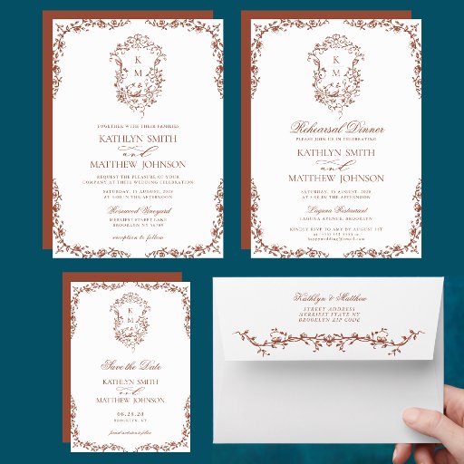 Terracotta Monogram Vintages Wappen Hochzeit Einladung