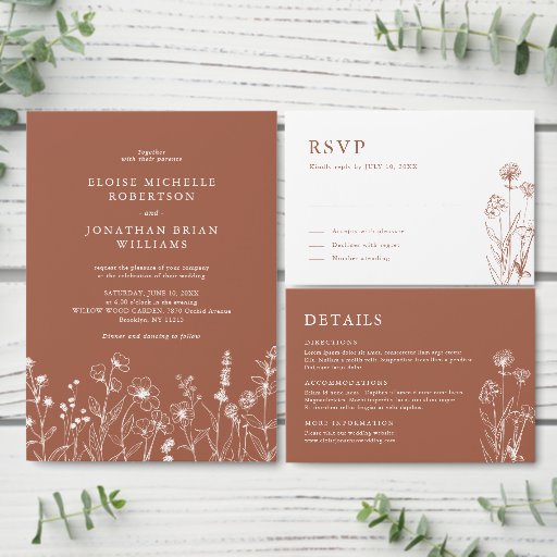 Terracotta Rustikale Herbsthochzeit Wildblume Einladung