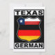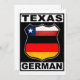 Texas deutsches Design, im Stil eines coolen amerikanischen Road Route Schildes. Der Text Texas Deutsch ist oben und unten, mit der Flagge des Staat Texas und der Flagge Deutschlands innerhalb des Wegzeichens. Ideal für Texaner deutscher Abstammung und für Ex-Pats im Lone Star Staat.