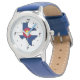Kinderuhr aus Edelstahl mit blauem Lederarmband
