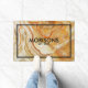 Elegantes Bild von beige-braunem Marmorsteinmuster. Anpassbarer Name, einfacher geometrischer Rahmen und anpassbarer Text in schwarz. Elegantes minimalistisches Formatdesign.