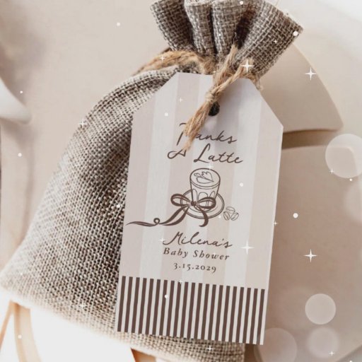 Thanks A Latte Cafe Bebe Coffee Bow Baby Shower Ovaler Aufkleber