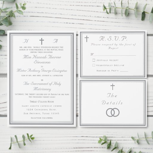 The Refined Catholic Silver Wedding Einladung