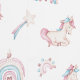 Looking for a design that combines magic and softness? This wallpaper features a pure white background adorned with cute little unicorns and pastel rainbows (pink and light blue), along with twinkling stars and magic wands.