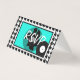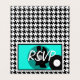 Aquamarine, blaue, schwarz-weiße 1950er Jahre Theme-Grußkarte/rsvp-Karte. Karo aus der Erholung der Sammlung.